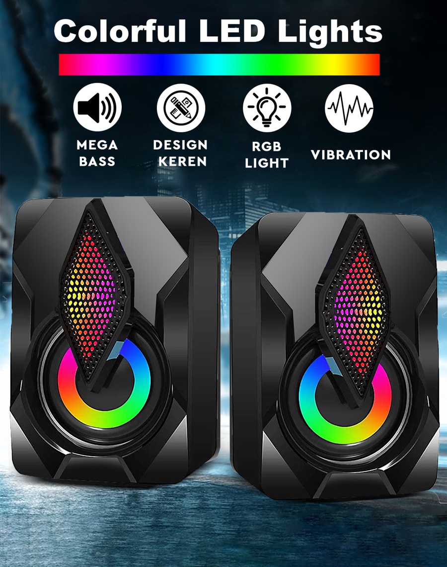 A81-speaker Computer Gaming Speakers - 3W*2 RGB Lights Wired Stereo Mini - 3.5mm Jack + 2.0 USB Powered For Gaming/Movie/Music/PC/Laptop Multimedia 2.0 Channel speaker RGB Lighting effects Multi-platform compatibility (Laptop, Desktop, Mobile) USB & 3.5mm plug