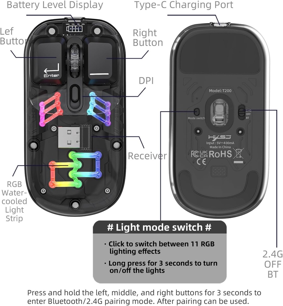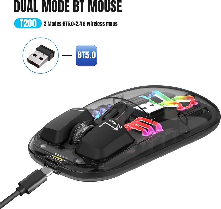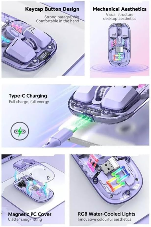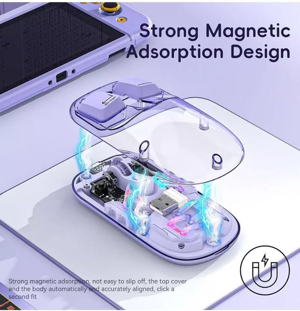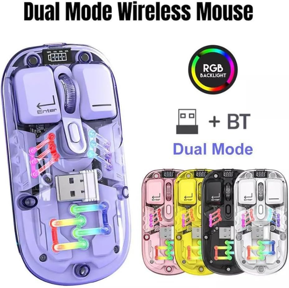 Cobraa R55- Rechargeable Transparent wireless & Bluetooth Mouse with 1600 Dpi and battery indicator- RGB water cooled light – 4 Buttons – Saving On/Off button- Use up to 2 months from the charge