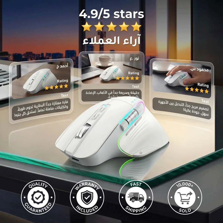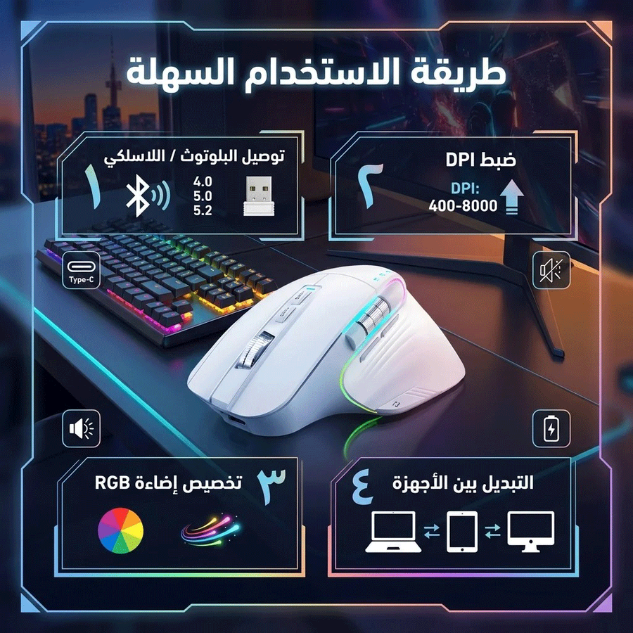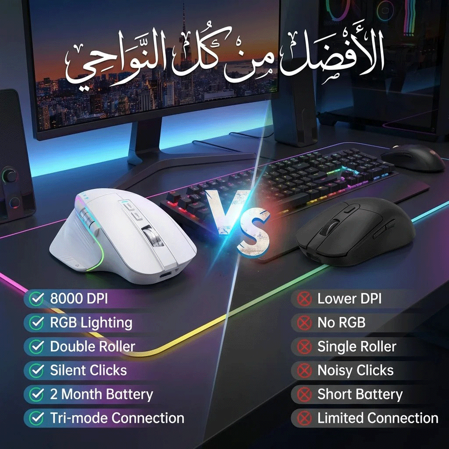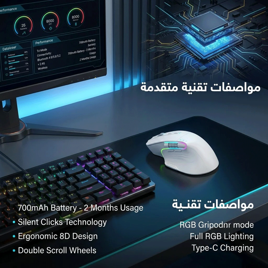 Cobraa TM-Master Rechargeable 8000Dpi tri-mode Bluetooth / Wireless mouse 10m- Silent clicks RGB- Ergonomic 8D design- Double roller design-