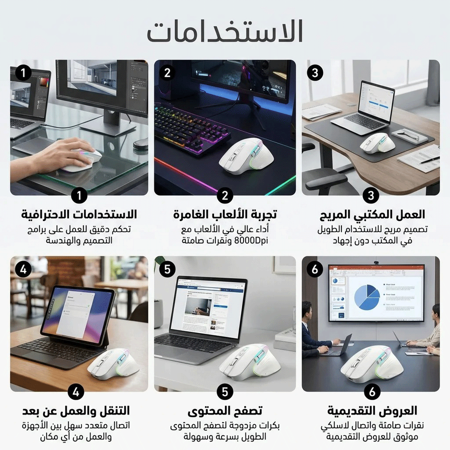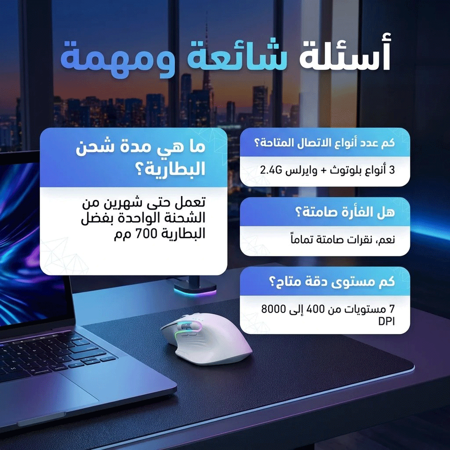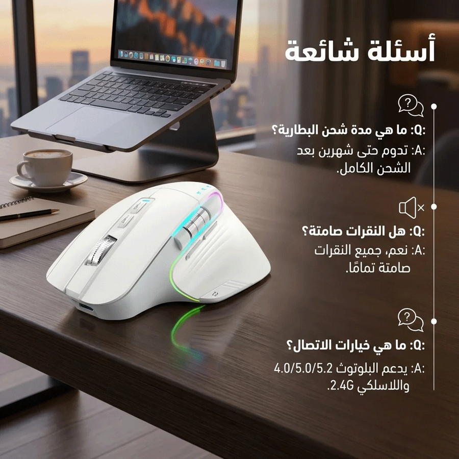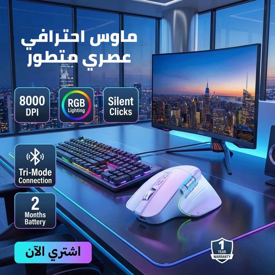 Cobraa TM-Master Rechargeable 8000Dpi tri-mode Bluetooth / Wireless mouse 10m- Silent clicks RGB- Ergonomic 8D design- Double roller design-