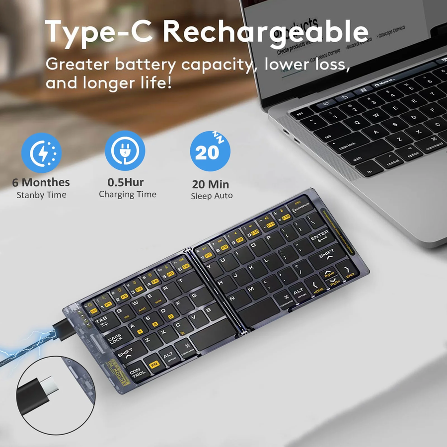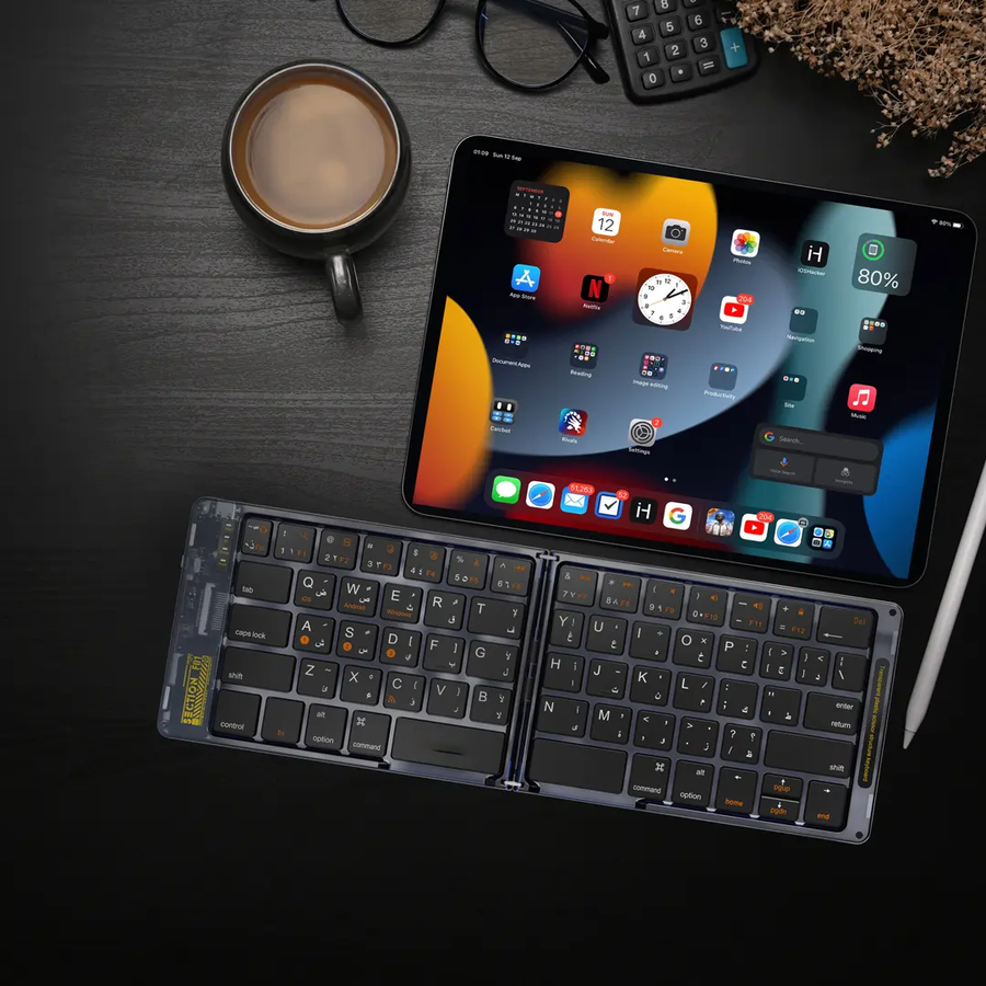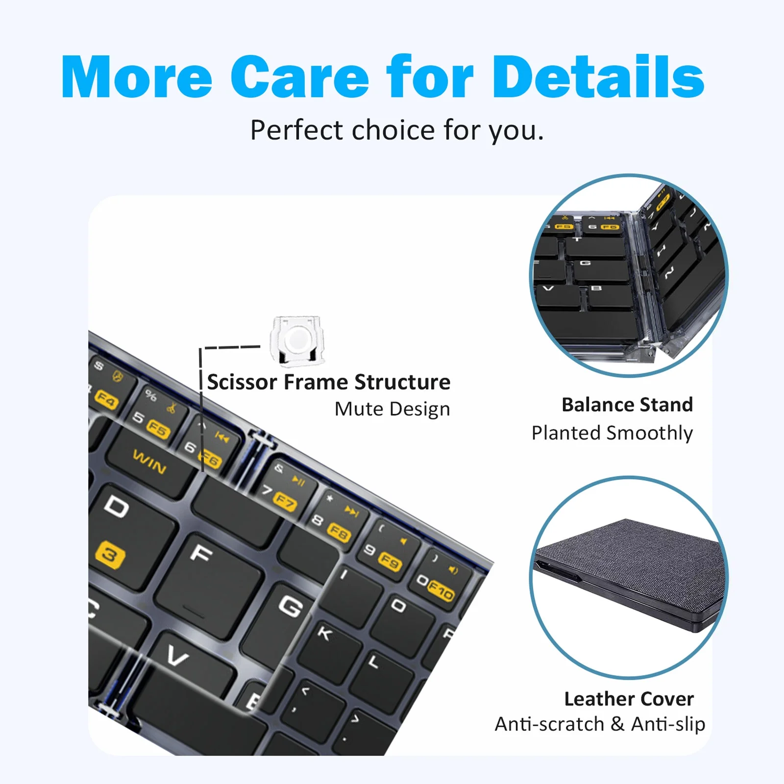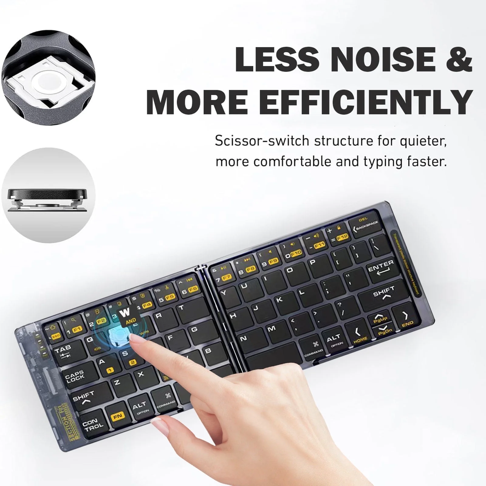 2. Dual folding Bluetooth keyboard, triple system compatible, easy to carry