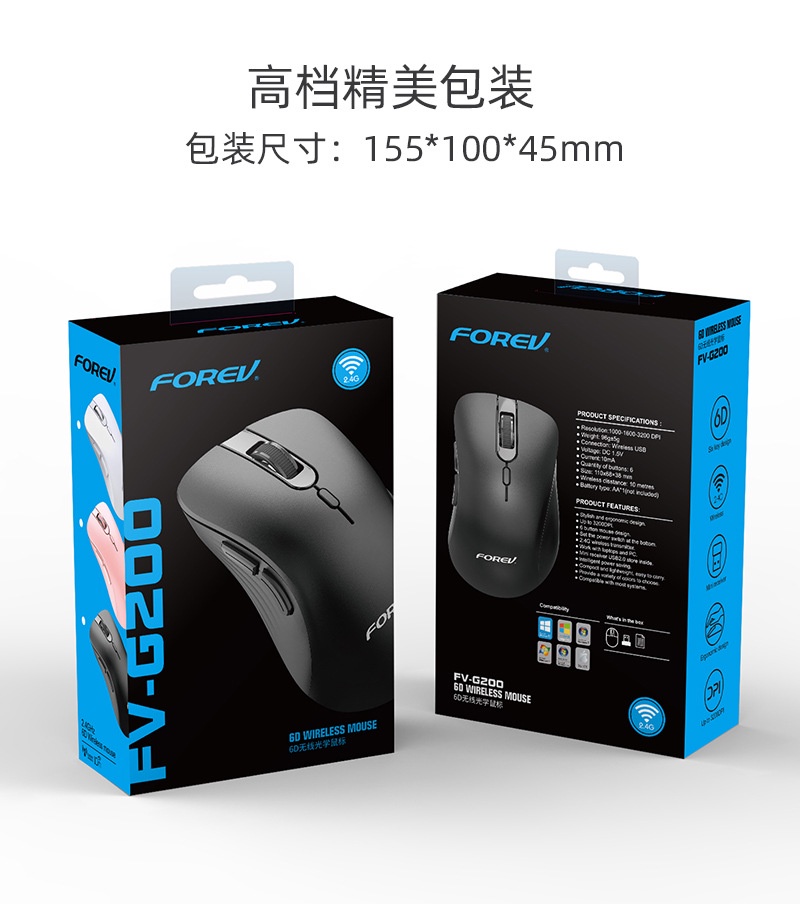 Forev FV-G200 Rechargeable Dual connection Mouse Wireless & Bluetooth Mouse with 3200 DPI works up to 2 months from the charges from the charge