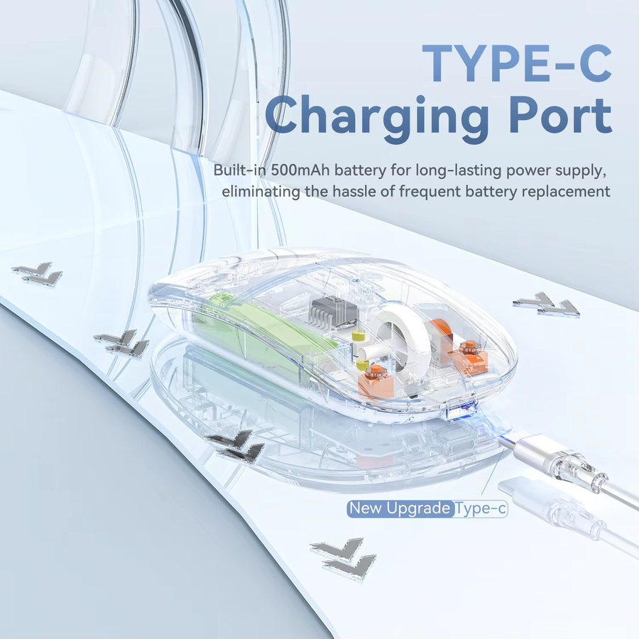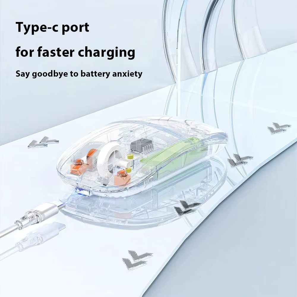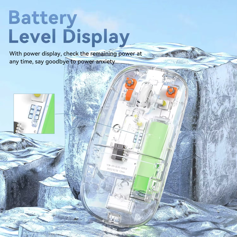 GR-133 Transparent Rechargeable Bluetooth & Wireless Mouse with battery indicator works up to 2 months from the charge