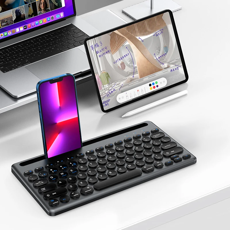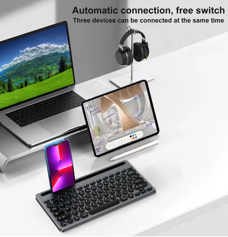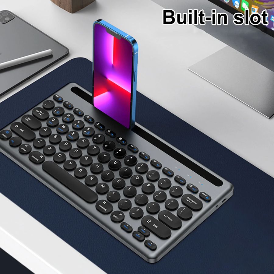 Dual Mode BT / Wireless Keyboard- Silent Ultra-thin - With Mobile Holder & 10m - IOS / Windows / Android For Smart TV , Tablet ( Arabic / Eng. Key ) | Black