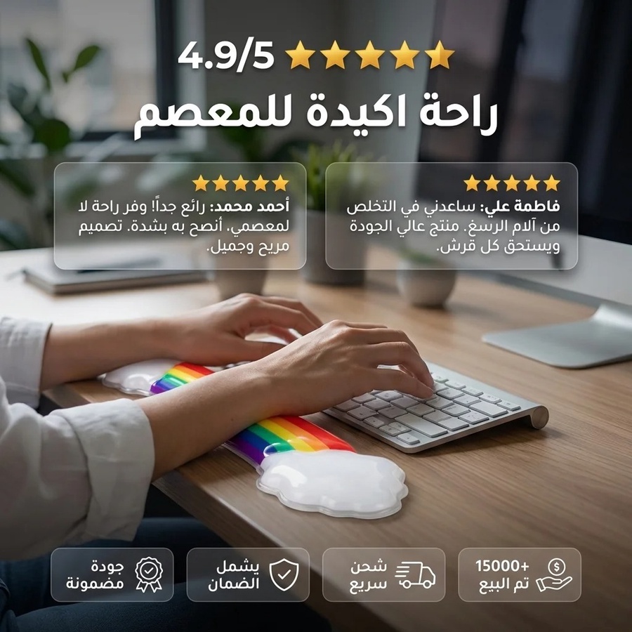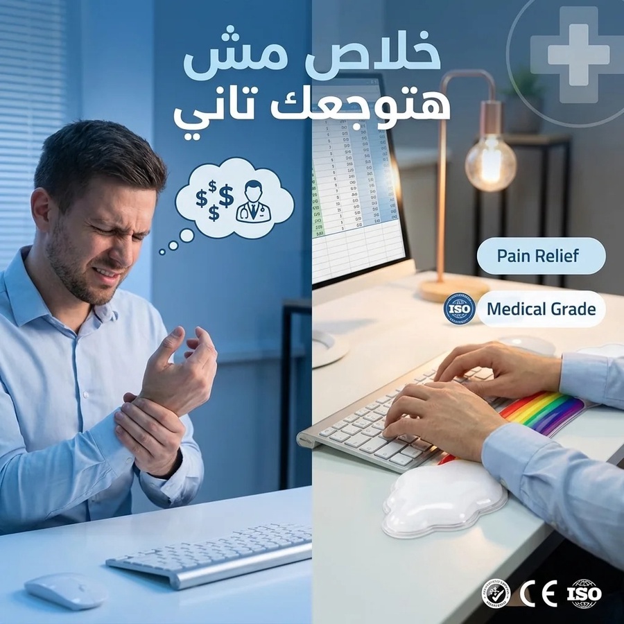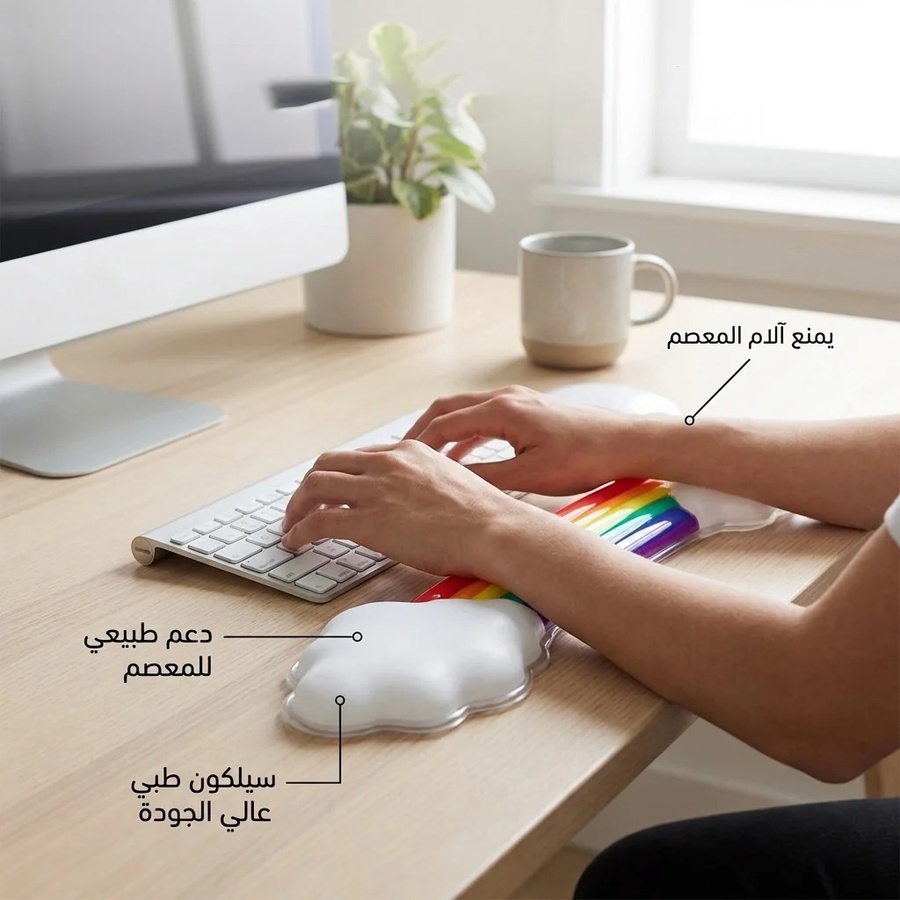 silicon Cloud Wrist Rest Keyboard, White Colorful Cloud Palm Rest with PU Cute Keyboard Rest for Wrist Support and Arm Rest, Desk Cloud Wrist