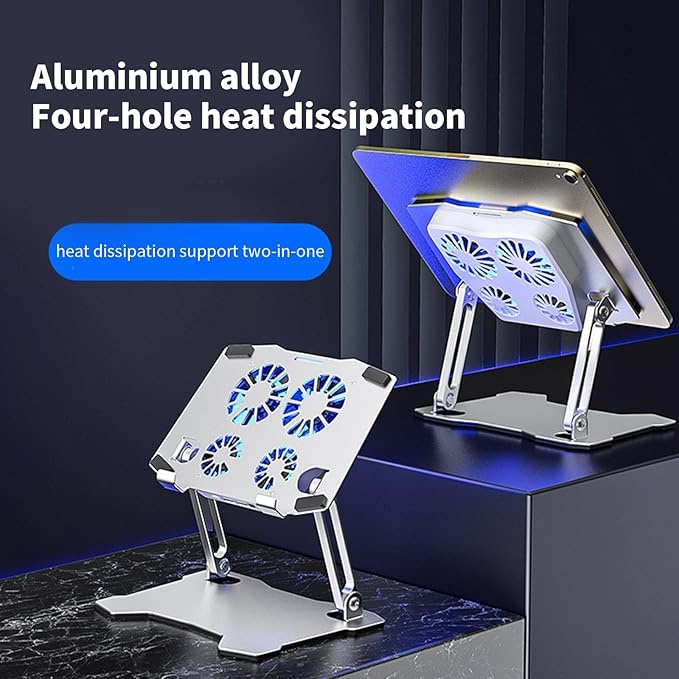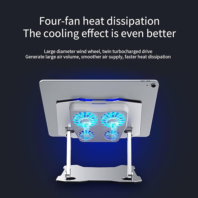 Laptop Stand with 4 fans , Aluminum Adjustable Multi-Angle Laptop Riser with Heat-Vent and Blue light