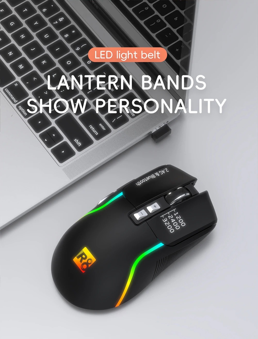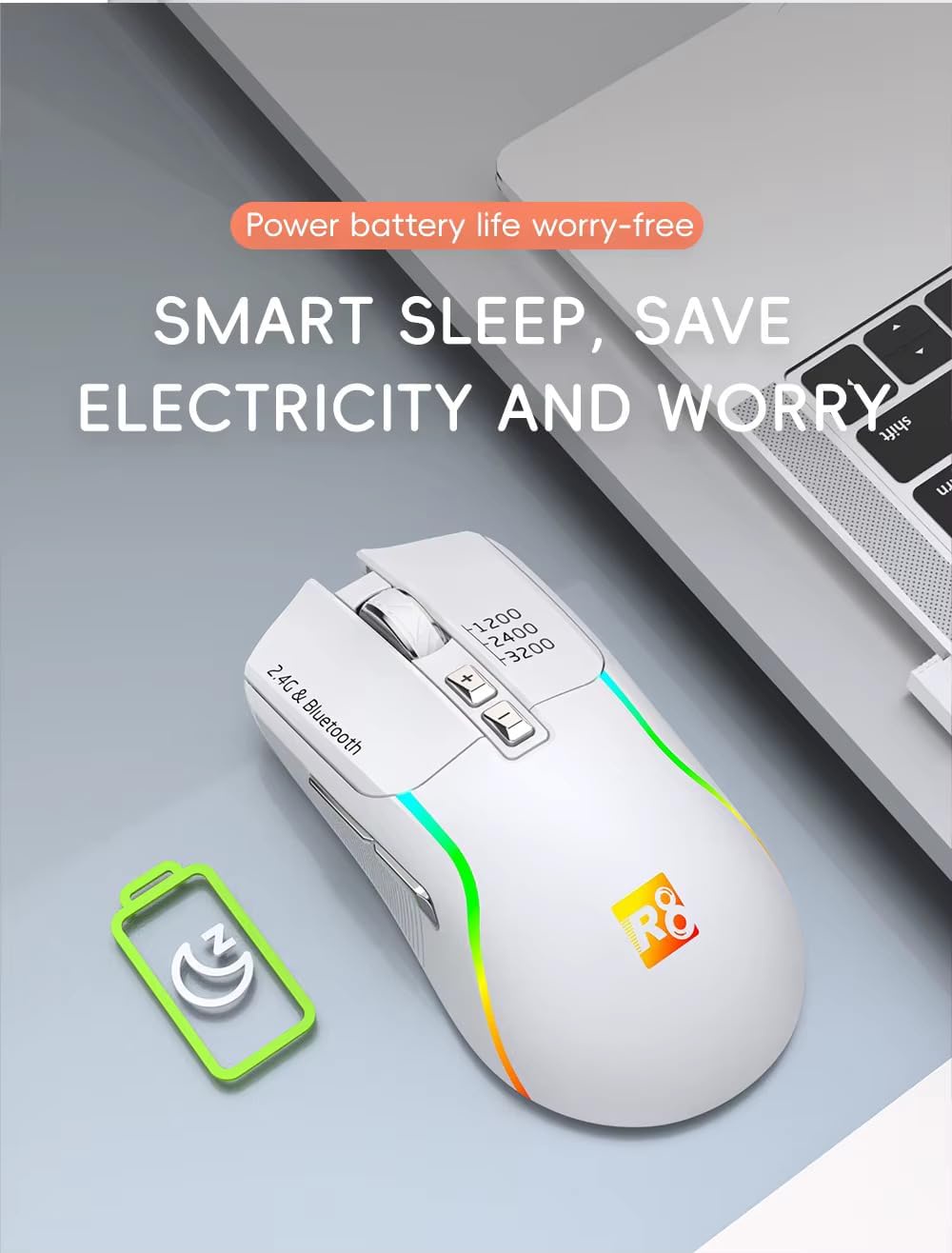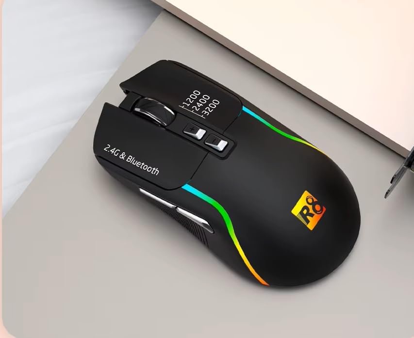 R8 1761 RGB Rechargeable Dual Mode Blutooth / 2.4G Wireless Gaming Mouse 10m – RGB Lighting – 7 Buttons Power Saving On/Off button – 3200 DPI – Lightweight –