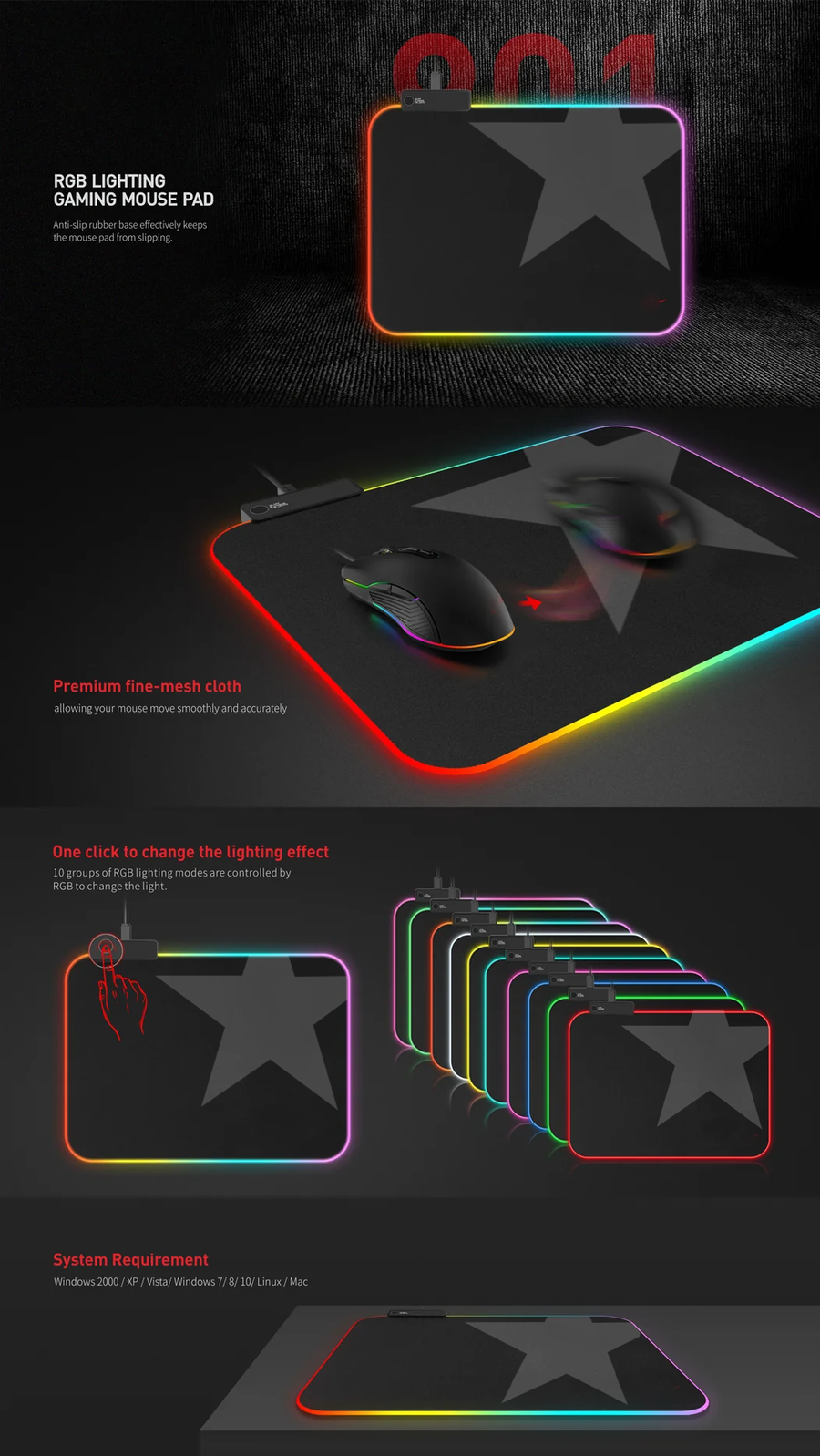 RGB mouse pad (35 X 25 cm) for Mouse - Non Slip Rubber - Speed Edition