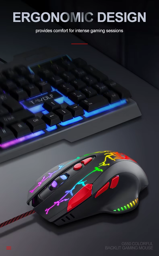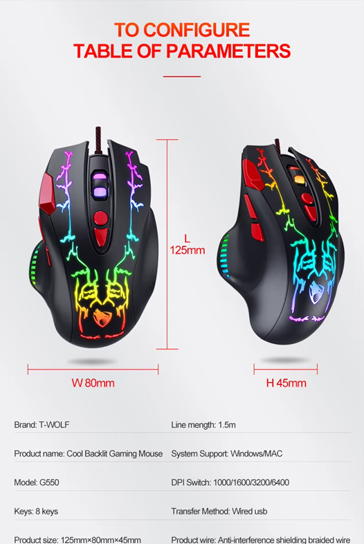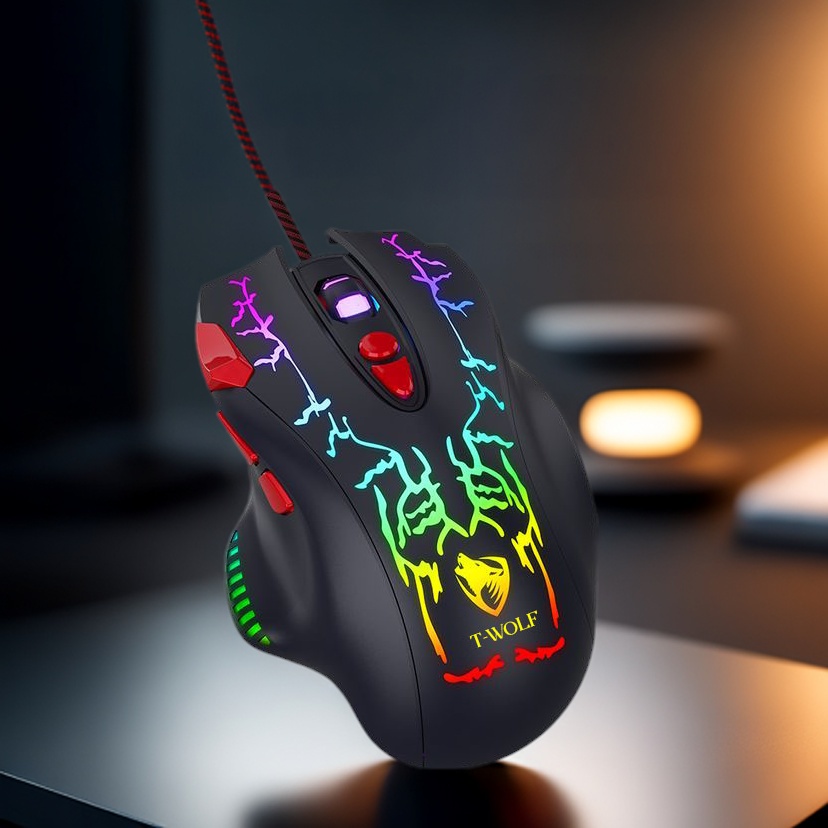 T-WOLF G550 THUNDERWOLF RGB Gaming Mouse - 6400DPI - Chroma RGB Backlit - 7 Programmable Buttons | Black