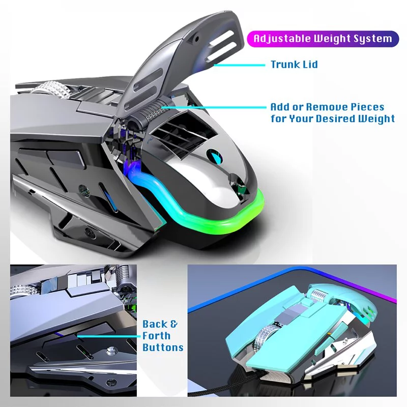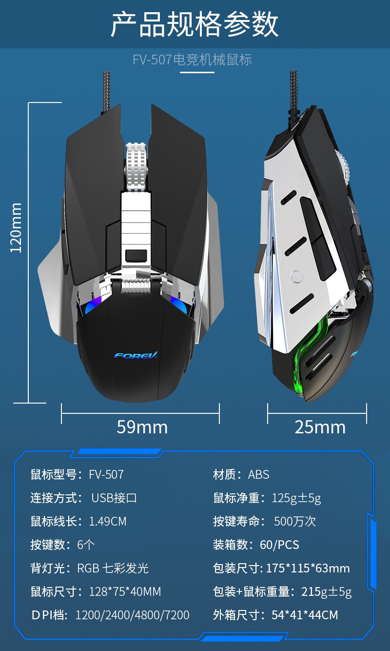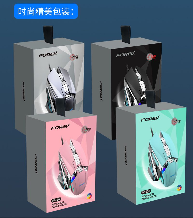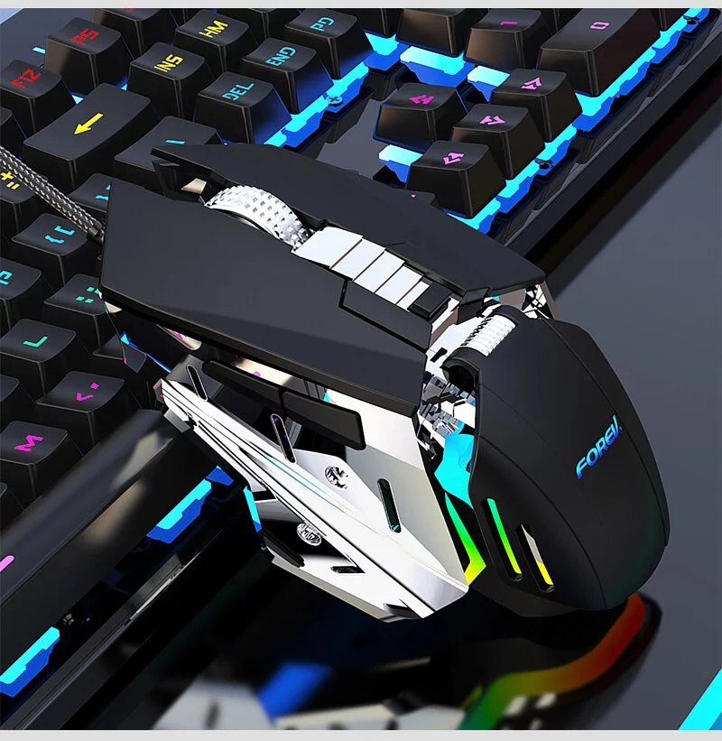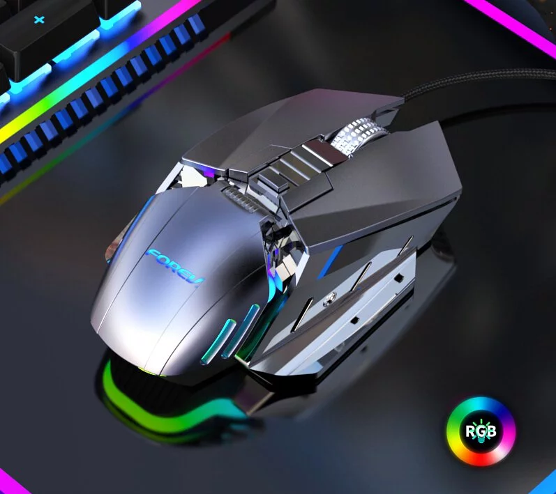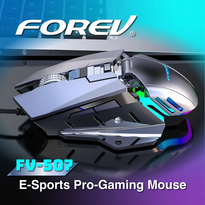 Forev FV-507 Gaming Mouse – Adjustable Weight for the Best Control – 1 Wheel & 6 Buttons – Up to 7200 DPI – 7 Selectable RGB modes – Durable Metal Base Plate