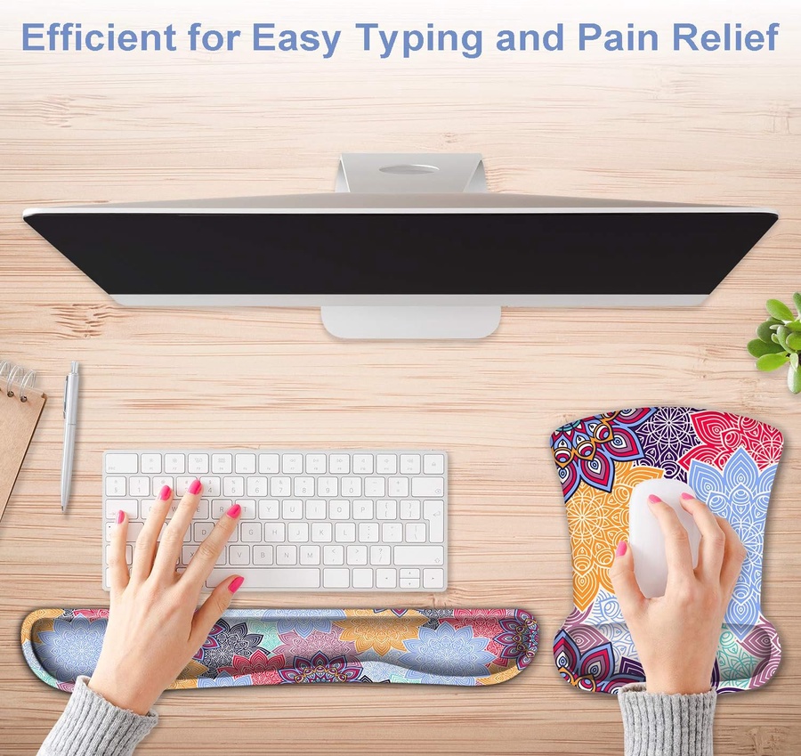 Keyboard Wrist Rest and Wrist Support Set for Computers and Laptops, Memory Foam, Soft and Breathable, Ergonomic Design, Non-Slip Rubber Base, Easy Typing
